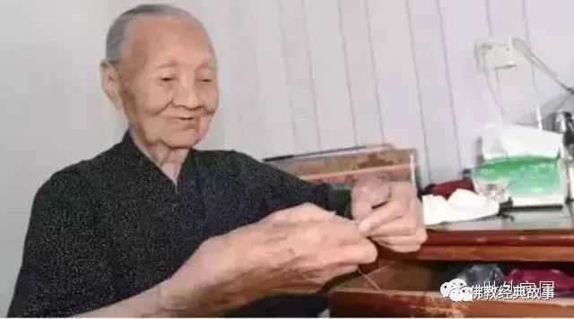 老人百岁了,穿针引线依然自如。