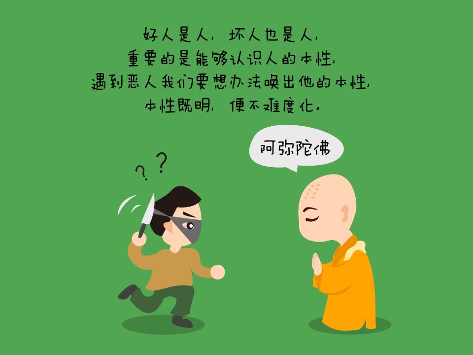好人是人,坏人也是人,重要的是能够认识人的本性,当遇到恶人的时候,我们要想办法唤出他的本性,本性既明,便不难度化。