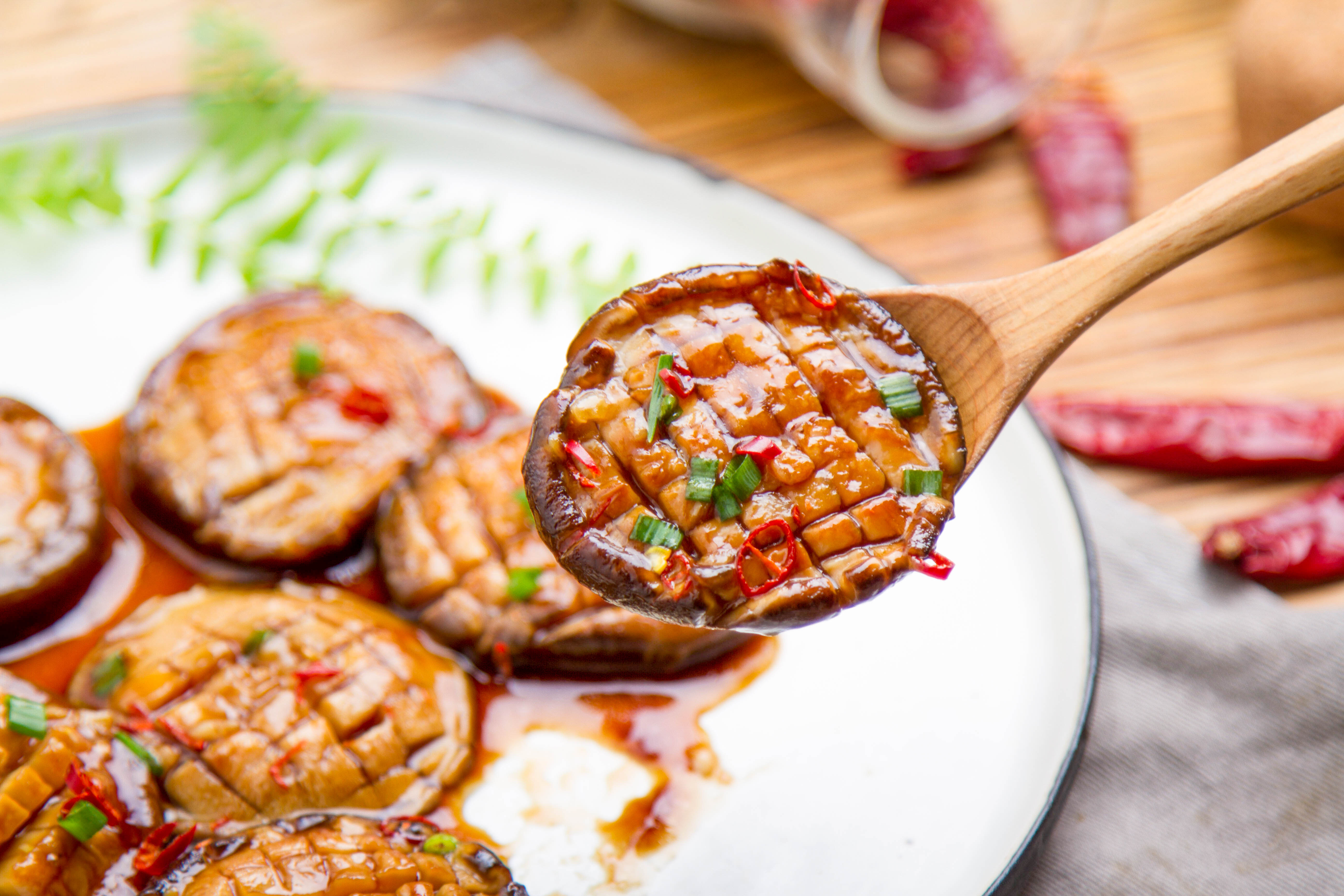 香菇厚实饱满,裹满酱汁后下饭一绝呀~