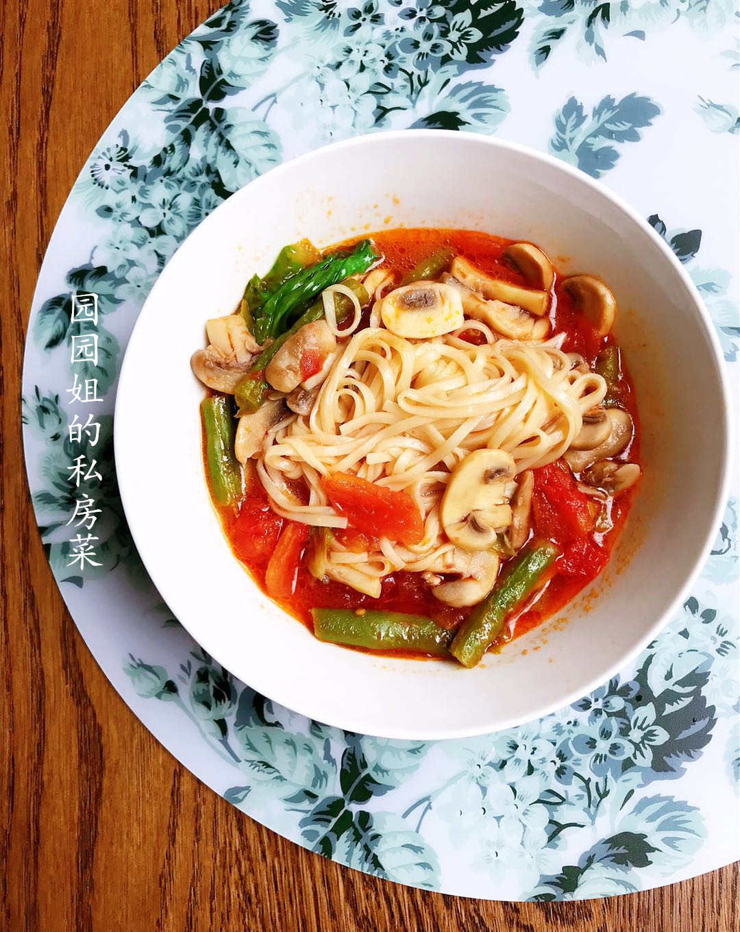 番茄蘑菇豆角煨面~三伏素食的烹饪技巧