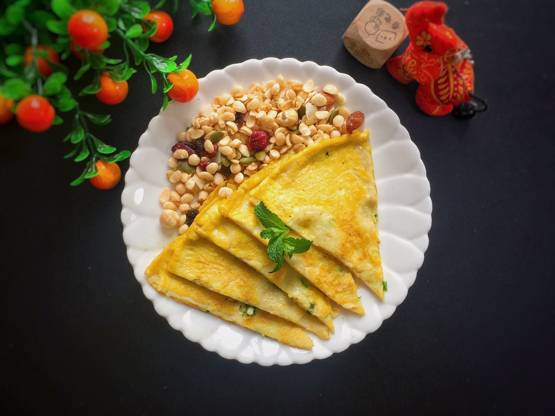两面金黄即可出锅盛盘,加入早餐坚果