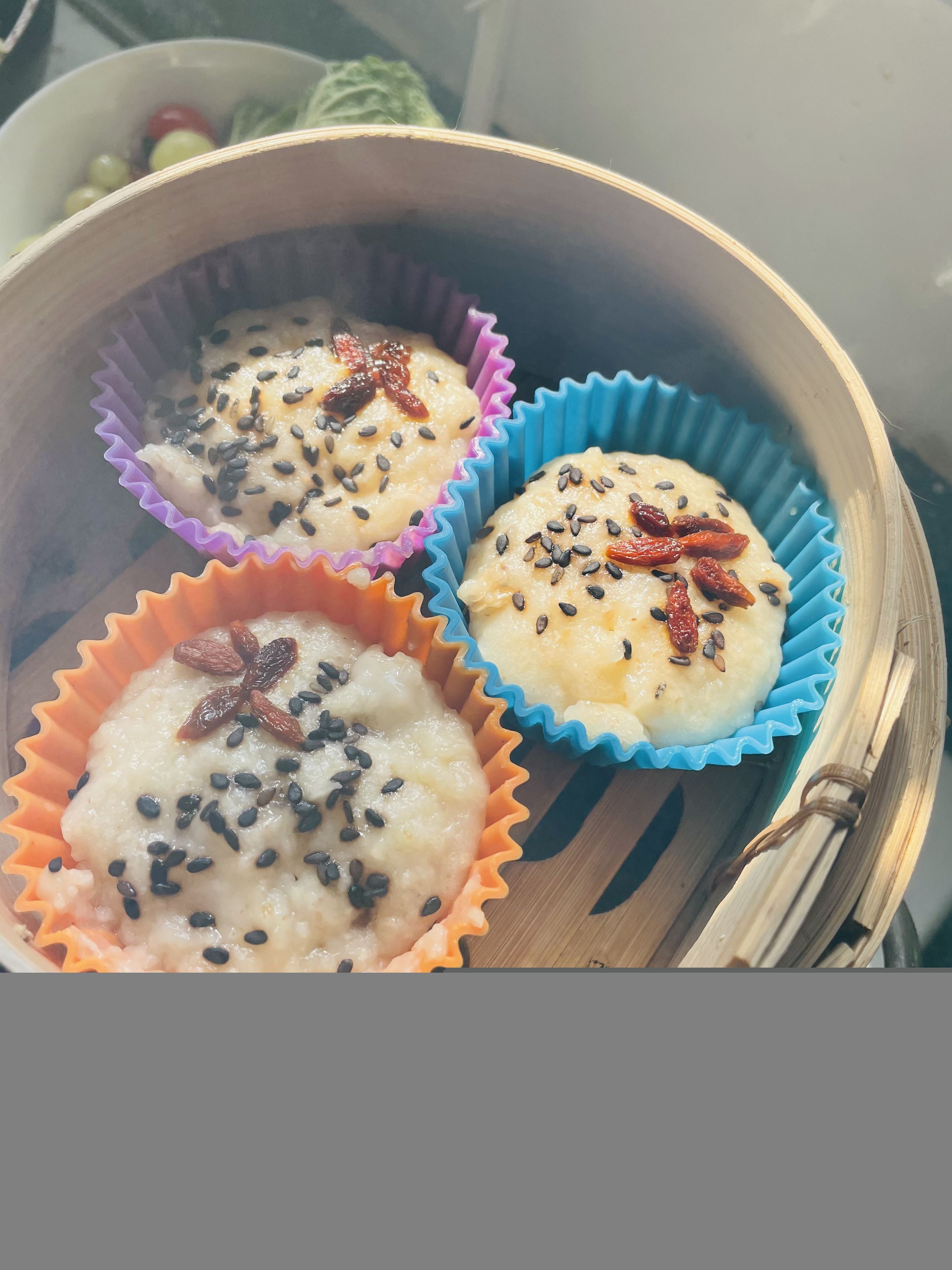 芝麻和枸杞当点缀。冷水上锅蒸,20分钟左右。