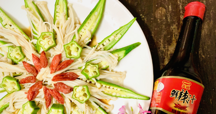 快手鲜辣汁拌秋葵金针菇