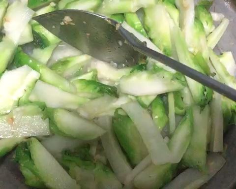 倒入儿菜,翻遍均匀,沿着锅边倒点开水进去,吱一声后立刻盖盖子