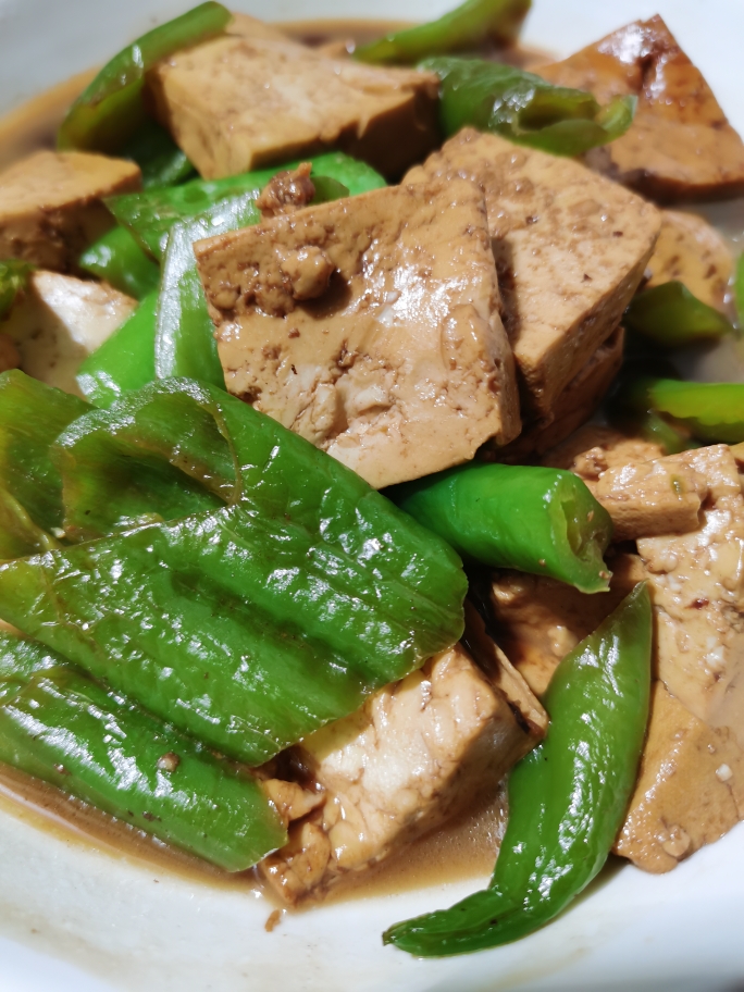 简单下饭快手菜尖椒烧豆腐