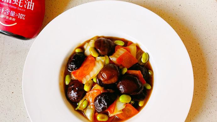 食材:白菜 胡萝卜片 香菇 毛豆 大蒜片 味达美臻品蚝料